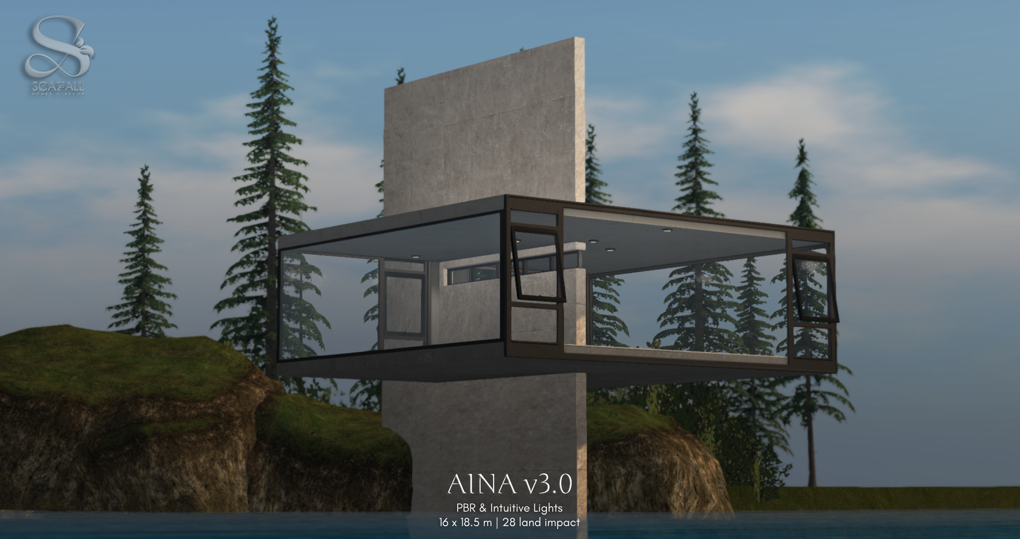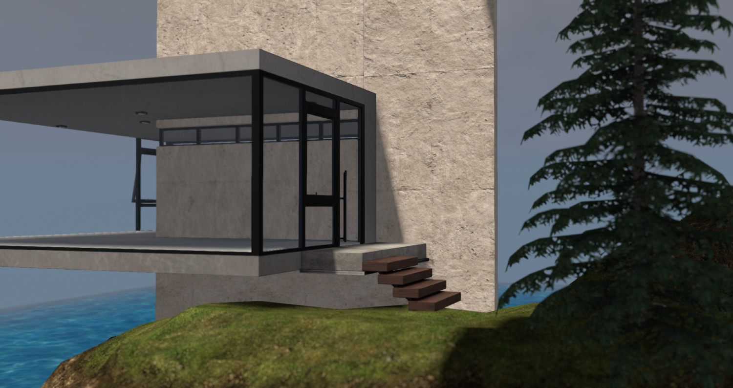 This virtual home is modelled after Yakusha Design’s “Air Cabin” – a conceptual cliffside retreat designed with panoramic glass, structural lightness, and strong geometric form. While not an exact replica, Aina faithfully follows the spirit and architecture of the original, adapted thoughtfully for Second Life.