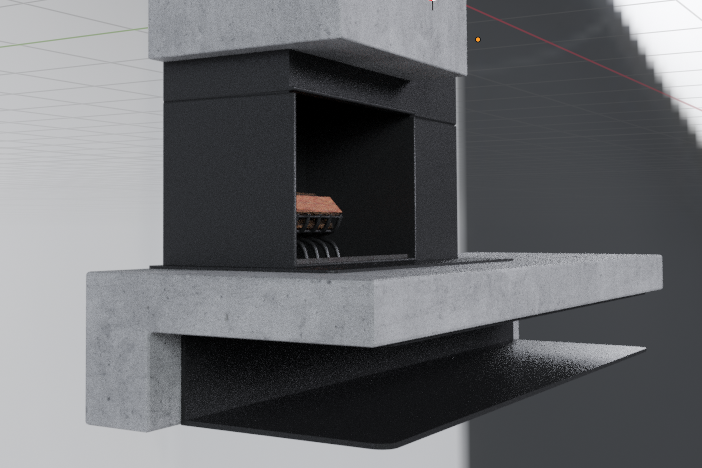 And so I gave up on the hearth, and defined the pocket underneath… Which ended up solving the hearth! And so it was closer, but not quite. To add more depth and interest to the pocket I decided to detach it from the underside of the concrete. From the position of your avatar’s eyes, this will work as a secondary highlight.