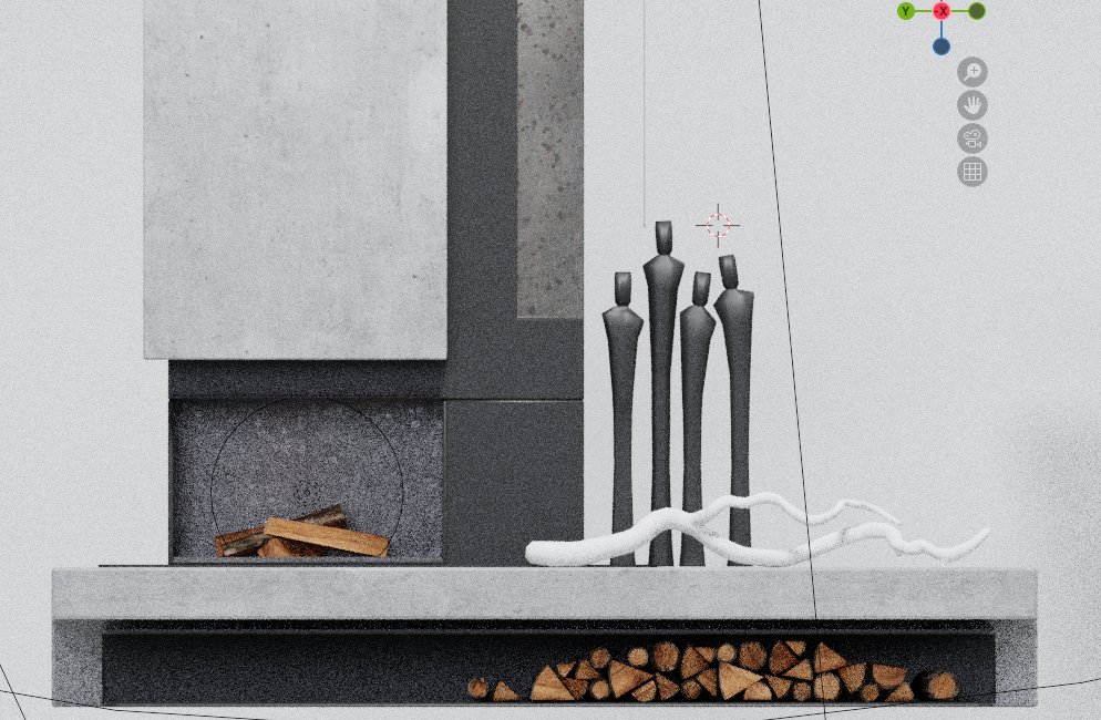 Before defining the hearth, I felt there was something missing in that the chimney held “movement” and the base fell flat. Cue the myriad of tests: